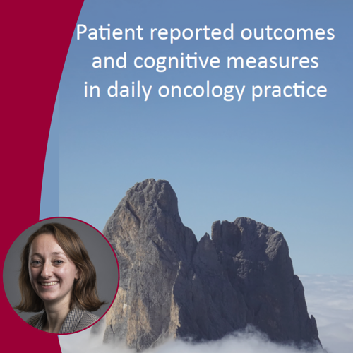 “Nu steeds meer mensen kanker overleven, wordt de kwaliteit van leven na de behandeling steeds belangrijker. Om beter inzicht te krijgen in die kwaliteit, heb ik samen met collega’s PROMs-vragenlijsten geïmplementeerd. Dat zijn vragenlijsten waarin patiënten wordt gevraagd naar mogelijke klachten, zoals vermoeidheid, slapeloosheid, of cognitieve klachten, zoals concentratieproblemen of geheugenverlies. Uit hun antwoorden komen bepaalde scores. Hun arts krijgt deze te zien tijdens het consult. Zo komen vooral de minder zichtbare klachten naar boven. Daar kan dan iets aan gedaan worden, bijvoorbeeld met een doorverwijzing naar het Centrum voor Kwaliteit van Leven. Aanvankelijk waren de vragenlijsten alleen voor patiënten met borstkanker of melanoom, tegenwoordig zijn ze voor het hele ziekenhuis. Heel bijzonder om te zien hoe gemotiveerd mensen zijn om onze vragenlijsten in te vullen! Dat motiveerde ook mij. In andere projecten ging ik dieper in op de cognitieve klachten. Sommige mensen beschrijven deze klachten met een gevoel alsof ze met hun hoofd in de wolken lopen. Deze wolken komen terug op de cover van mijn proefschrift. Die foto heb ik zelf gemaakt, tijdens een bergwandeling. Ik ben dol op sporten en lezen, zo houd ik mijzelf lichamelijk en geestelijk fit.”
