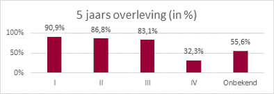 Deze grafieken laten zien hoeveel patiënten leven vijf jaar na de diagnose